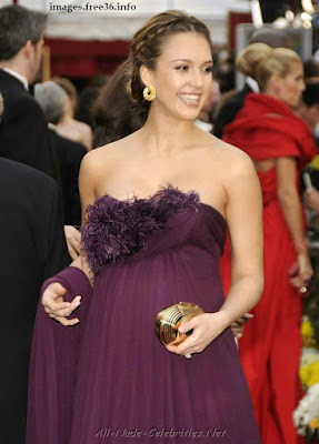 Jessica Alba shows pregnant boobies in a purple gown (12 IMAGES)