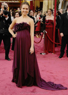 Jessica Alba shows pregnant boobies in a purple gown (12 IMAGES)